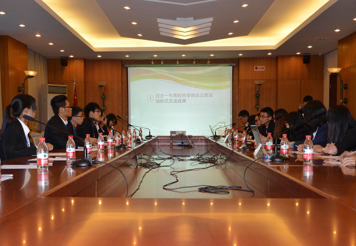 科学商店校际交流会于当天下午在延安西路校区举行。我校科学商店总店代表团、华东理工大学科学和上海中医药大学科学商店代表参会。各校总结交流一年来各校科学商店所开展的特色活动,谈论在科学商店发展中遇到的问题。各校的共同点都是加大在校内以及社区影响力,并围绕“科学商店将科普知识引进老百姓的日常生活”为宗旨,上海中医药大学将把科普剧带入社区,我校则会引进更好的科学设备展示给社区居民,华东理工大学继续在微信、微博、微电影上争取更好的发展,各校都在为创建更好的科学商店而努力。