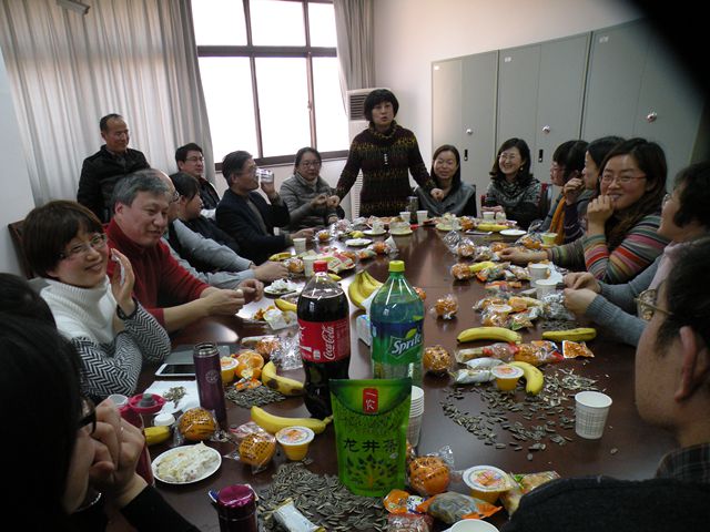 12月31日,外语学院工会在延安路校区为12月过生日的老师们举办了一个简单却不失隆重的集体庆生会。工会为“寿星”们买来生日蛋糕,工会委员们将一块块生日蛋糕递到每一位老师的手里,老师们现场还以歌曲演唱、乐器演奏等多种形式表达对过生日老师的祝福,庆生会现场洋溢着欢乐温暖的氛围。