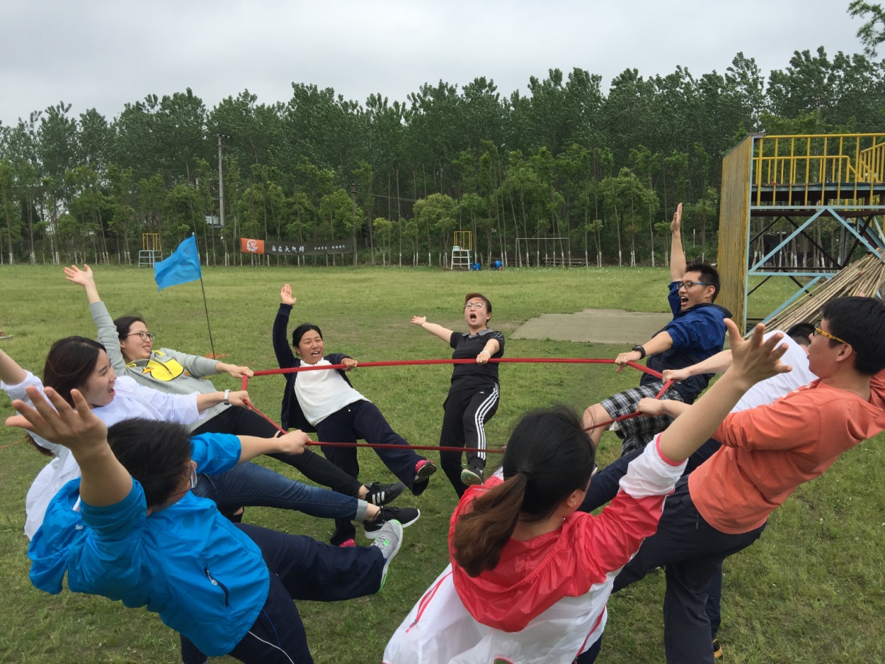 在教练的指导下,素质拓展活动在“情感啦啦操”中拉开序幕。老师们热身后积极投入到团队建设中来。不同小组的老师们为队名、口号、队歌、队旗出谋划策,彼此陌生的学员也逐渐熟悉起来,积极热情地投入到活动中来。老师们相继进行了“群龙取水”“急速60秒 ”“团队圈绳 ”等三个项目的拓展训练,现场助威声、加油声不断,小组之间你追我赶、队员之间协同共进,气氛相当热烈。参加此次活动的老师表示,素质拓展活动让老师们在工作之余,放松了心情,锻炼了身体,增进了彼此间的友谊。