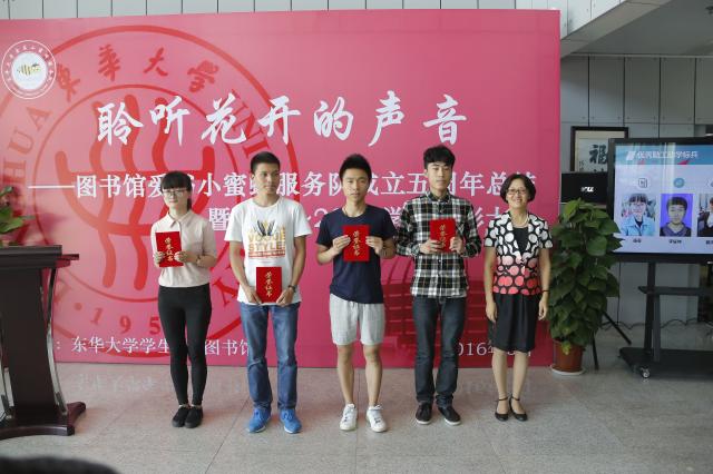 据悉,图书馆十分重视对勤工助学学生的管理工作,将其纳入配合学校人才培养任务的重要组成部分。图书馆爱书小蜜蜂服务队建队五载,共有千余人次学生入队实践,从建队伊始的一朵“花苞”,到五年后灿烂绽放,服务队承载着全校师生的期盼与梦想前行。尤其近两年,服务队融入到图书馆智能服务和现代化改造等一系列改革创新举措中来,以形式多样的活动形式促进队内交流,增强校内影响力,实践成效显著,对于改善和提高图书馆的政治生态、文化氛围、服务水平等发挥了积极的作用,为构建和谐校园作出了应有的贡献。祝愿服务队成员再接再厉、开拓创新,围绕校、馆“十三五”发展规划目标,以饱满的精神,迎接新机遇、新挑战,为学校改革发展添光彩。
