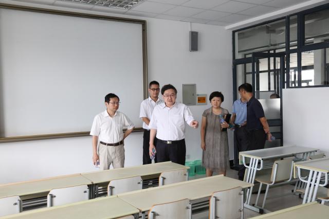 为确保新学期各项工作有序到位,9月8日,校长蒋昌俊带队深入松江校区教学楼、实验室、学生宿舍、食堂等各处,察看开学各项准备工作,副校长刘春红、邱高陪同检查,相关职能部门负责人一同前往。