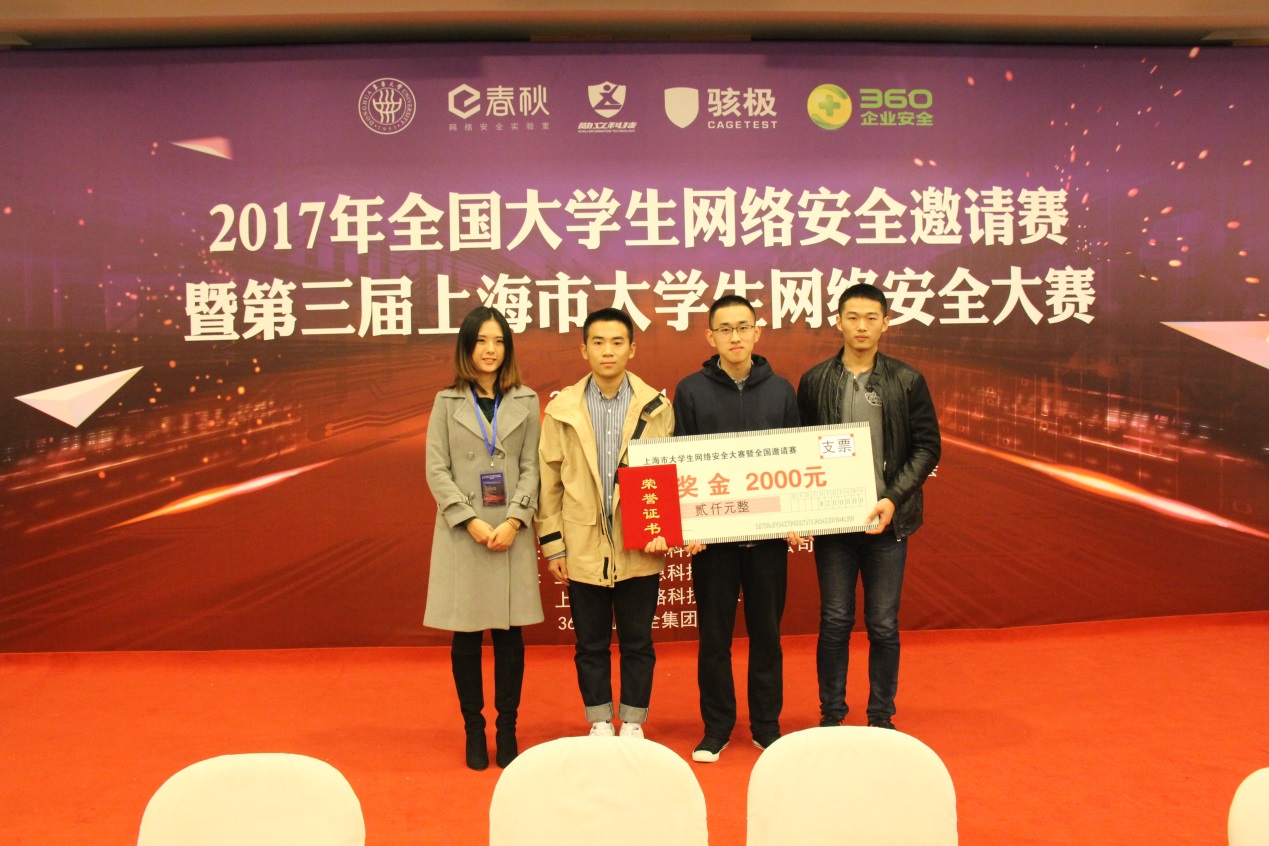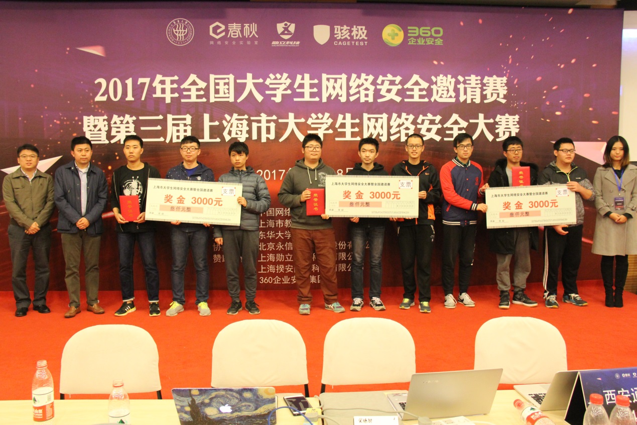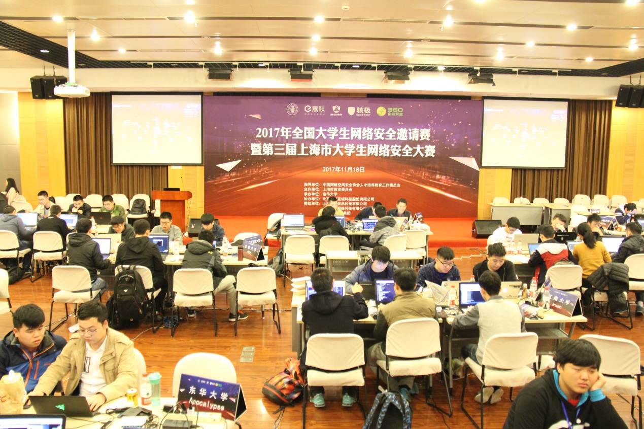 为宣传普及网络安全知识,提高大学生网络安全防护意识和技能,加强大学生实践能力和创新精神,不断提高网络安全人才培养质量,11月18日,由我校承办的2017年全国大学生网络安全邀请赛暨第三届上海市大学生网络安全大赛在延安路校区举行,经过6个小时的角逐,我校参赛队伍获网络攻防大赛特等奖1项、三等奖2项和信息安全作品赛二等奖1项、三等奖2项。这也是我校第一次摘得该项赛事桂冠。上海市委办公厅、上海市经信委,中国网络空间安全协会人才培养教育工作委员会有关专家等应邀出席,我校相关部处及学院负责人、部分企业嘉宾参与观摩。