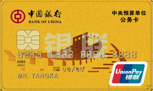 公务卡,是中央财政预算公务卡的简称,公务卡是指学校教职工通过单位以个人名义向发卡行申请开立、持有的,用于日常公务支出、科研支出和财务报销业务的银联标准人民币信用卡。