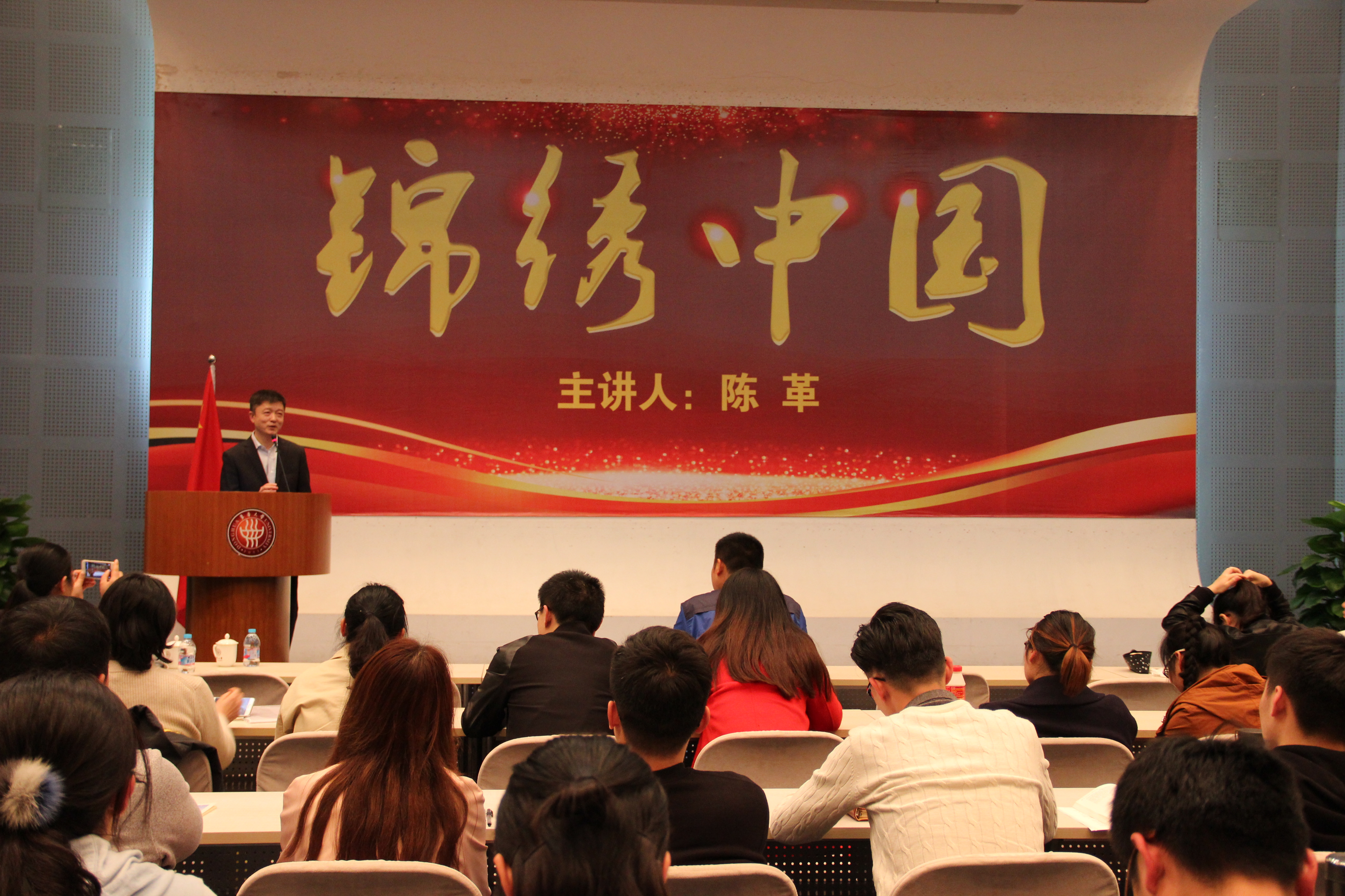 【声道一】《锦绣中国》中文版是东华选课系统里的“常客”,新学期中文版重磅加推——正在千里之外新疆教育学院挂职的我校副校长陈革专程返沪,不顾劳累走上讲台,与大学生们分享“人生成长与家国情怀”。“什么是家国情怀”“人生成长中应该要树立什么样的家国情怀”“如何培养家国情怀”,陈革副校长从自己的援疆经历讲起,饱蘸情感的话语,引起了学生们的强烈共鸣。