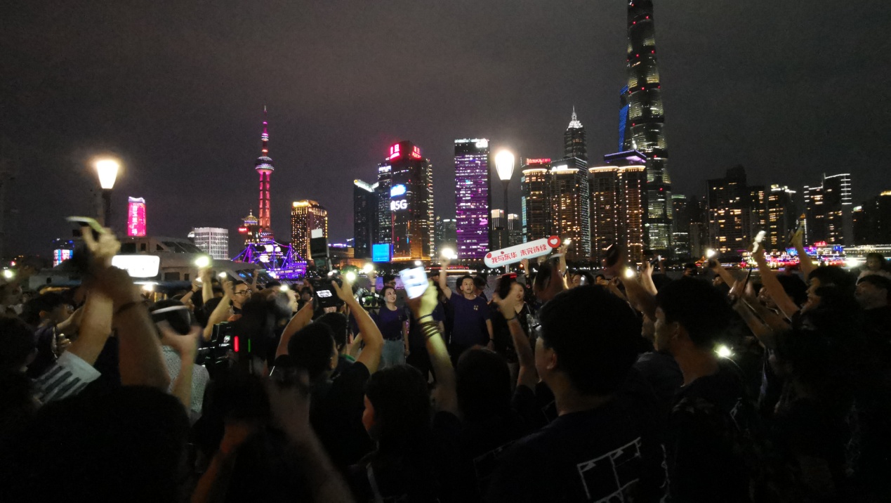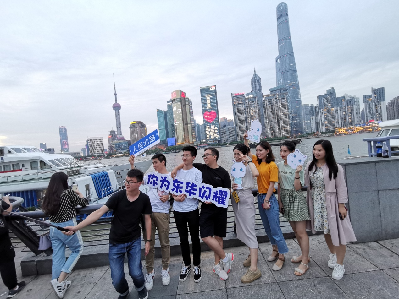 在线下活动中,2019届毕业晚会学生团队现场带来原创毕业歌曲《六月的天》,与“外滩之窗”大屏幕上的祝福语交相呼应。配合着线下手持创意KT板的文字,如“东华为你亮灯,你为东华闪耀”“记得,要做东华之光”“东华19有你,我们不说再见”“我与东华,未完待续”等,烘托出浓浓的毕业氛围。“文汇路”“人民北路”“延安西路”等学生熟悉的校园地标成为现场合影“神器”,“有趣、有料、有腔调”的蚕宝宝形象更是成为毕业生们现场争相留念的网红IP。