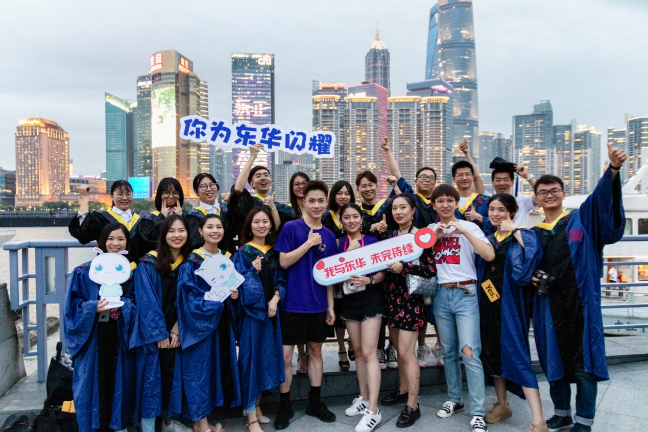 6月25日,我校2019届毕业典礼拉开大幕,当晚,上海地标建筑之一的“外滩之窗”再次为东华毕业学子点亮,大屏幕上轮番显示着为我校2019届学毕业广泛征集而来的毕业祝福语,“I❤DHU”“崇德博学,砺志尚实”“东华有面”“爱在上海,学在东华”“东华人,正青春”等逐一闪耀亮相外滩之滨,把毕业别离化作灯光里的嘱托。