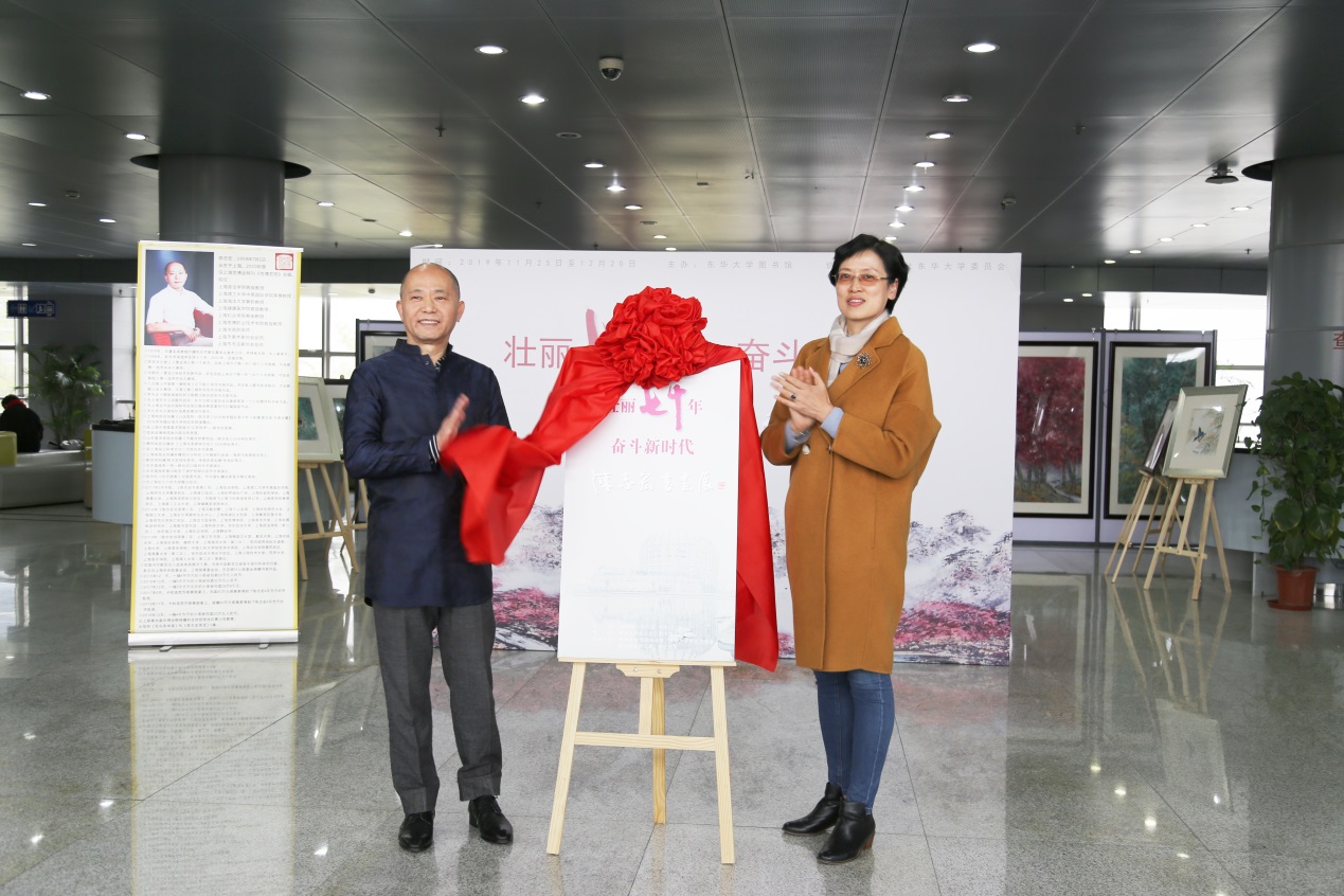 为弘扬中华优秀传统文化,更好满足师生精神文化需求,营造浓郁的校园文化氛围,11月25日,由校图书馆主办,九三学社久久久久国产成人精品亚洲综合委员会协办的“壮丽七十年 奋斗新时代——陈志宏书画展”在我校松江校区图书馆开幕。上海著名书画家陈志宏、党委统战部部长岑洁、图书馆馆长方建安、图书馆党总支书记施敏俊出席开幕仪式。我校各民主党派负责人、教师及学生代表一同参加活动。陈志宏与岑洁共同为书画展揭幕,开幕式由图书馆副馆长毛莉主持。