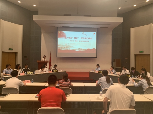 为促进共学共建, 6月2日,我校体育部直属党支部、档案馆党支部与广富林街道社区事务受理服务中心党支部联合开展“深入学习‘四史’ 坚守初心使命”为主题的“四史”学习教育知识竞赛。体育部直属党支部书记、档案馆馆长沈洁,体育部主任朱江华,广富林街道社区事务受理服务中心副主任范丽,以及三个支部近40名党员及入党积极分子、部分民主党派人士、群众等参加活动。