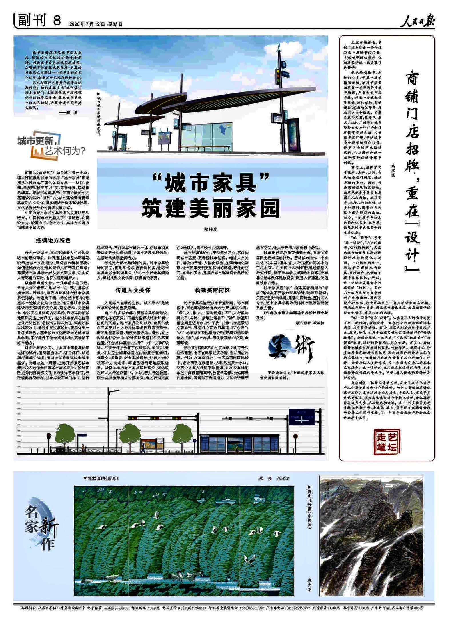 【编者按】2020年07月12日《人民日报》 第08 版登载了我校服装与艺术设计学院鲍诗度教授署名文章《“城市家具” 筑建美丽家园(城市更新,艺术何为?)》。城市更新是满足城市发展要求、增添城市生机活力的重要举措。推进城市公共环境设施建设、加强城市与建筑风貌管理、完善城市景观生态规划……城市更新的各个环节,都离不开艺术与设计助力。艺术与设计怎样契合城市文脉与精神?如何真正实现“城市让生活更美好”? 鲍诗度教授聚焦城市更新中的热点话题,为提升城市美学建言献策,全文转载如下: