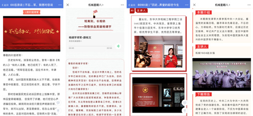 除理论学习外,学校还积极拓宽学习“长征精神”及“四史”教育的平台及渠道,从线下延伸至线上,从课内拓展到课外,引导学生将理论与实践结合,做到思想“不掉线”,行动“不止步”。结合红军长征路中的历史坐标和典型事件,学校开辟线上“全景式”活动场景,引用先烈事迹及革命场景等历史图文影像资料,打造“重走长征路”线上“云长廊”“云书屋”及“云影院”,以漫画、海报、动画等形式创作“云画展”,让大学生在全景式、浸润式“长征云游”中重温爱国心、重走长征路,感受共产党人的使命和初心。构筑线下“体验式”实践场域,组织“重走长征路”实践调研活动,前往图书馆、博物馆、革命纪念馆、革命遗址等文化教育基地“打卡学习”,在“历史回望”中学会历史思维、培养历史眼光、增强使命担当;开展“原型寻访”活动,寻访经历过重大历史事件的英雄楷模及其亲属战友,挖掘先进人物与“长征精神”的内在联系,在红色寻访中学习英雄、致敬先烈,激发青年学生用奋斗和热情坚守初心、砥砺奋进,让“长征精神”真正入脑、入耳、入心、入行。