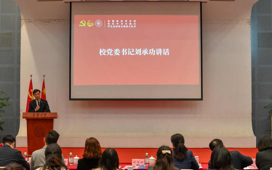 刘承功在会上指出,社团是学生校园文化生活的重要载体,在学生价值塑造方面有着重要作用。要以青年学生成长发展为中心,更好发挥社团在团结青年、凝聚青年、服务青年、发展青年方面的独特优势和作用,创新社团管理体制和运行机制,形成具有东华特色的社团工作体系。他强调,学生社团党支部的建立,是新形势下创新基层党组织设置、扩大党组织覆盖面的有益探索。要及时总结经验,积极探索社团党建的新思路,发挥社团党支部的战斗堡垒作用,使社团党建成为学校社团工作的新亮点与新优势。他指出,要充分发挥社团在党史学习教育中的独特作用和密切联系青年学生的组织优势,注重在“深学”“真信”“笃行”上下功夫,引导广大青年学生做到学史明理、学史增信、学史崇德、学史力行,争做新时代的青年先锋。