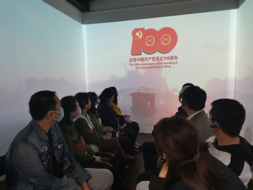 车墩镇是中国第一批特色小镇,以影视文化为主要特色产业。2019年,车墩镇成为上海科技影都建设的重要承载地。活动中,宣传部党支部全体成员还现场学习了“重走红色光影路”党史教育创新党课,搭乘红色巴士“初心号”,走入中共一大会议在上海、嘉兴南湖召开,五卅运动爆发等历史重现场景,沉浸式重温中国共产党成立的曲折坎坷,身临其境般地感悟党带领人民披荆斩棘的奋斗历程。活动最终在支部全体党员高唱“没有共产党就没有新中国”的歌声中画上完满的句号。