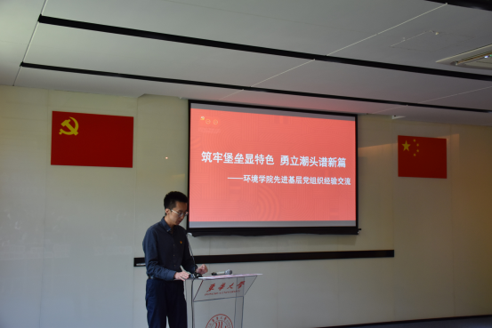 建环能环本科生党支部书记孟仑、环科系党支部书记秦艳代表先进基层党组织做了交流发言。孟仑同志立足于这一年扎实的支部工作,深刻总结了支部在党史学习教育中的做法。秦艳同志则结合学科特点,从党建联建,推动“我为群众办实事”方面,分享了党支部党员教师利用科研优势,开展河体水处理,推动生态文明建设做出的贡献。
