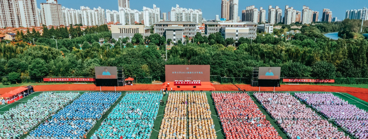 9月17日,我校2021级新生开学典礼在松江校区东体育场举行,3680名本科新生、3052名研究生和136名留学生新生共迎开学第一课,同启奋进新征程。