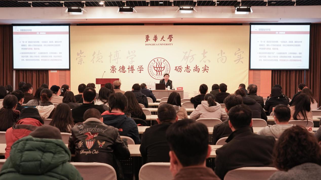 近日,校长俞建勇为服装与艺术设计学院做“科学编制‘十四五’规划,加快建设高水平研究型大学”的专题辅导报告,学院党政领导班子及全体教职工参加了学习。