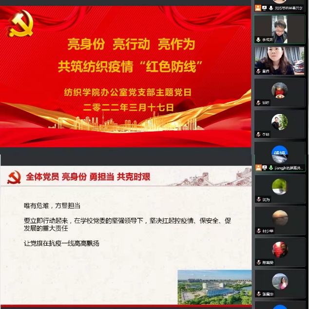 (学院各基层党支部开展“亮身份亮行动亮作为,共筑纺织疫情‘红色防线’”主题党日活动)