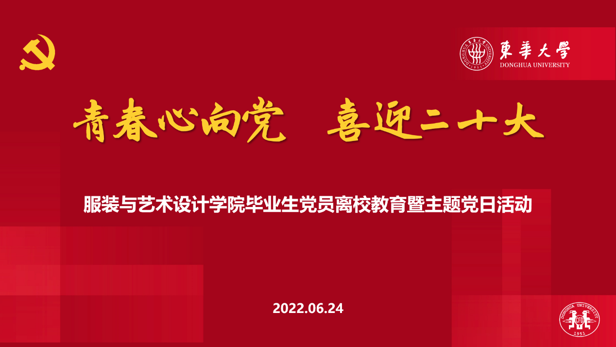 为弘扬伟大建党精神,巩固拓展党史学习教育和“四史”学习教育成果,将学党史和悟思想、强党性有机结合起来,6月24日,服装与艺术设计学院开展“青春心向党,喜迎二十大”毕业生党员离校教育暨主题党日活动。副校长陈南梁、学院党委书记吴晶、学生处副处长赵彦明、学院党委副书记刘雯玮、专职党务干部许兆洁出席活动,学生工作办公室辅导员以及2022届全体夏季毕业学生党员一同参与。