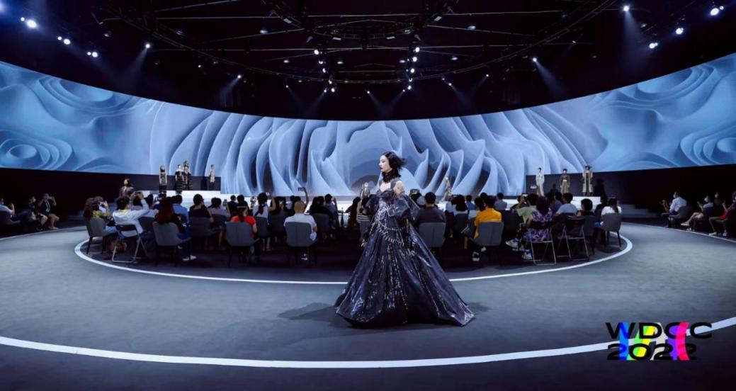 传统的T台化身成舞台之上“山丘”与“湖泊”,曲线的外形仿佛水面泛起的圈圈涟漪,叠起的高度仿佛层层的山峦。舞台背后是一块长80米、高5米、270度的环形巨型大屏幕,置身其中,就像打开了进入平行时空的元宇宙大门,体验感十足!9月16日下午,《衣尚东方》——2022久久久久国产成人精品亚洲综合新锐设计师创意时装作品发布在世界设计之都大会主会场拉开大幕。